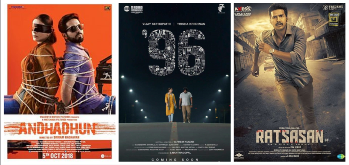 In the annals of Indian cinema, October 5th, 2018, stands out as a date marked by an extraordinary convergence of cinematic excellence. On this auspicious day, cinephiles across the nation witnessed the theatrical debut of not one, not two, but three masterpieces from diverse linguistic realms: Bollywood’s “Andhadhun,” Telugu’s “Ratsasan,” and Tamil’s “96.